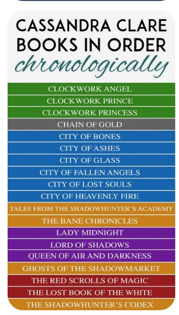Cassandra Clare Books In Order Shadowhunters City Of Bones Clockwork Angel Chain Of Iron How To Read Me